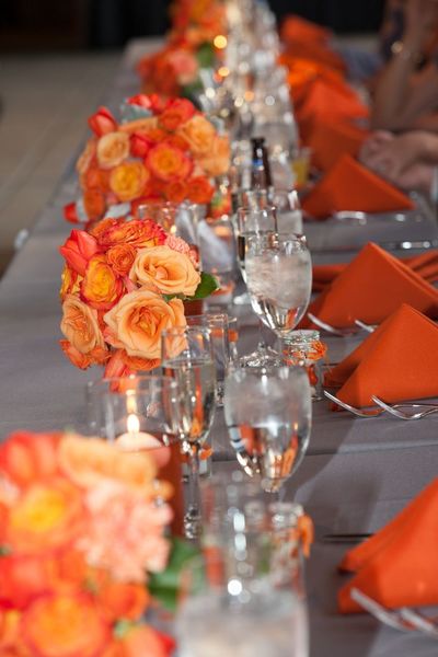 يجمع اللون البرتقالي بين مزيج اللونين الأحمر والأصفر قدرة هائلة على التأثير المباشر على النفوس ، فهو يبث البهجة،ويخفف من التوتر ،وقادر على خلق جو من الحماس في المكان الذي ينتشر فيه, والهدوء الذي ينشره هذا اللون مستمد من ألوان الغروب التي تشعر من يشاهده بالدفء والحب.وينسجم مع هذا اللون العديد من الألوان كالأبيض والأصفر والأحمر والبني والأخضر. اللون البرتقالي هو لون مميز تعتمدينه لحفل زفافك الشتوي أو الصيفي يجمع بين الأناقة والتأثير الإيجابي ويبعث الدفء ويجمع بين القوة والإشراق والإبتهاج ويعبر الثيم البرتقالي عن شخصيتك المرحة والجريئة والمنطلقة.